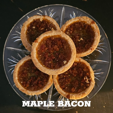 A buttery pressed pastry shell filled with rich maple filling topped with crispy bacon for the ultimate sweet and salty in every bite.